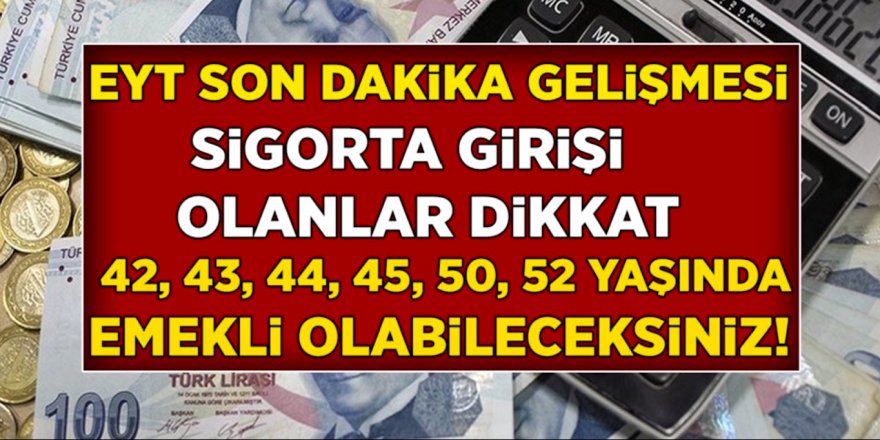Emekli olmayı isteyen milyonlarca vatandaşın beklediği EYT yasasında gözler aralık ayına çevrildi. EYT ile ilgili son dakika gelişmeleri yakından takip edilirken masadaki formüller ve staj girişi konusunda tartışmalar gündemdeki yerini koruyor. Emekli olmak isteyen çalışanlar, yasa gereği belli bir yaşı doldurmaları, belli bir gün sayısınca prim ödemeleri gerekiyor. Sigorta başlangıcından sonra kadınlar için 20, erkekler içinse 25 senenin doldurulmasıyla emeklilik hakkı doğuyor. Bu kapsamda yaş, prim ve sigortalık gününü doldurma gibi şartları tamamlayanlar emekli olabilirken bazı durumlarda bu süreler düşürülerek farklı emeklilik seçenekleri oluşabiliyor. Burada önemli kriterlerden birisi 3600 iken erken emeklilik yolları ve EYT son durum hakkında tüm detayları haberimizde derledik. İşte merak edilenler…EYT’SİZ ERKEN EMEKLİLİK FIRSATI!Emekli olmak çalışma yılını ve primini dolduran tüm çalışanların yasal hakkı. Emekli olmak için yasada yer alan bazı şartları taşımak gerekiyor. Yasada belirlenen bu şartları yerine getirenlere emekli olmak için fırsat doğuyor ancak yapılan bazı değişiklikler çalışanların önüne engel olarak çıkıyor. Prim gün sayısı ve sigortalı olma gününü tamamlayan ancak yaşa takılan çalışanlar emekli olamıyor. Milyonlarca çalışanın madur olmasına neden olan bu durumla alakalı EYT yasa çalışmaları sürüyor.8 Eylül 1999'dan önce sigorta girişi olanlar 3600 günle 15 sene sigortalı olma gününü tamamladıklarında yaş şartından emekli olma hakkı kazanıyor. Eylül 1999 ve öncesi sigorta başlangıcına sahip olanlar 15 yıllık hizmet süresi, 3.600 prim gününü tamamladığında emekliliğe hak kazanan çalışan kıdem tazminatını talep ederek işten ayrılabilir.Yasada belirlenen hizmet süresi ve prim gününü dolduran çalışanın kıdem tazminatını talep ederek işten ayrılması mümkün. Nasıl mı? Söz konusu çalışan; Mayıs 2002 tarihinde 15 yıllık sigortalılık süresini dolduran kadın çalışan 50, erkek de 55 yaşında emekli aylığına hak kazanıyor. 3600 gün yaşlılık, ölüm, malullük sigortaları primi ödeyenler istekleri halinde emekli olabiliyor.15 YIL KESİNTİSİZ ÇALIŞAN EMEKLİ OLABİLİR Mİ?8 Eylül 1999’dan önce sigortalı olanlar; 15 yıl sigortalık süresi, 3.600 gün prim ödeme şartı ve yaş koşulunu yerine getirenler emekli olma hakkı kazanır.Yaş şartı yasada belirtilen hizmet süresi ve prim gün sayısının tamamlandığı tarih esas alınarak belirleniyor. Bu tarihe göre de kademeli olarak erken yaşlarda emekli olma avantajı bulunuyor.Prim gününün tamamlandığı tarih kaç yaşında emekli olunacağını belirleyen etkendir. Söz konusu çalışanın emekli olabilmesi için kadınların 50, erkeklerin de 55 yaşını tamamlaması gerekiyor.15 YILLIK MEMUR EMEKLİ OLABİLİR Mİ?Emekli Sandığı Kanunu'na göre, sakatlıkları nedeniyle göreve alınanlardan en az 15 yıl hizmeti bulunanlar istekleri halinde emekli aylığına hak kazanabiliyor.İlk sigortası 1999'dan önce olanlar bu süre ve prim günü doldurduğunda kıdem tazminatı almaya hak kazanır. Ancak kıdem tazminatında staj sigortası başlangıç tarihi dikkate alınmıyor.15 YILLIK SÜRE VE PRİMİ 2002'DE DOLDURAN EMEKLİ OLABİLİR Mİ?23 Mayıs 2002'de 15 yılını dolduran kadın çalışan 50, erkek çalışan 55 yaşını doldurduysa 3600 gün malullük, yaşlılık, ölüm sigortaları ödendiyse istekleri halinde yaşlılık aylığı almaya hak kazanır.24 Mayıs 2002 ile 23 Mayıs 2005 arasında koşulları yerine getiren kadın çalışan 52, erkek çalışan 56 yaşını doldurmaları koşulu ile emekli olabilir.Sigorta başlangıcı Kasım 1981 tarihi ve öncesi olan kadın çalışan 50, Kasım 1976 öncesi erkek çalışan sigortalıysa 55 yaşında 3600 günü doldurmaları koşuluyla emekli olabilir.İHBAR SÜRESİNE UYMAK ZORUNLU MU?Belirsiz süreli iş sözleşmelerinin işçi tarafından feshinde belirtilen haklı sebeplerden herhangi biri nedeniyle işten ayrılan ihbar süresine uymak zorunda değil.ASKERLİK BORÇLANMASI İLE SÜRE DOLDURULABİLİR Mİ?SSK statülü çalışanlarda 15 yıl, 3600 günle emeklilik imkânından 8 Eylül 1999 öncesi işe girenler yararlanabiliyor.Askerliğini sigorta başlangıcından önce yapanlar borçlanmaları durumunda (Başlangıcı Eylül 1999 öncesi, yaş şartını yerine getirmeleri halinde) 15 yıl 3600 günle emeklilik imkanından yararlanabilir.Yıpranma payı olan mesleklerde çalışanlar için ödenen primler de daha fazla kabul ediliyor, yaş şartından indirim yapılıyor.BAKAN BİLGİN'DEN YENİ EYT AÇIKLAMASIEYT'lilerin durumuyla ilgili çalışmaların ne aşamada olduğunun sorulması üzerine Bilgin şunları söyledi:"Biz 1999 öncesi işe girmiş olanların yaş sorunu yüzünden emeklilikte karşılaştıkları sorunun çözümüne dönük düzenleme hazırlığı içerisindeyiz. Bu tek tip bir düzenleme. Bazı televizyonlarda uzman diye elinde kalemle hesaplamalar yapıyorlar, bu rakamlar onlar açısından maalesef doğru değil. Ellerinde veriler yok. Bütün çalışanların yaşı, günü ve prim sayısı gibi tüm veriler elimizde. O gerçek veriler üzerinde çalışıyoruz. Aralık ayında bunu Meclise intikal ettireceğimizi kamuoyuna açıkladık ve sayın Cumhurbaşkanı'mıza da bu konuda bilgi verdik."Staj ve çıraklık dönemi sigortaların EYT için başlangıç sayılıp sayılmayacağıyla ilgili bir soruya Bilgin, "Onlar farklı. Onlar EYT kapsamında değil zaten. Sigorta girişi olanlarda bir sorun yok. Çıraklık ve stajyerlik bir sigorta girişi değil. Onlar sağlık sigortasını korumak üzere geliştirilmiş bir sistem." yanıtını verdi.EYT konusunda bir düzenlemenin çıkacağını bildiren Bilgin, bu düzenlemenin ayrıntılarını gerekli hesaplamaların ardından kamuoyuyla